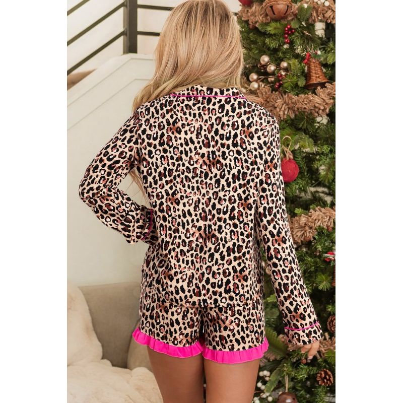 Leopard Contrast Trim Shirt and Ruffle Hem Short S