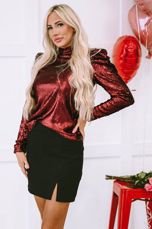 This top combines elegance with comfort, flattering all body types effortlessly. Its shimmering sequins beautifully catch the light, ensuring you make a striking impression at any event. The sophisticated neck design suits both formal and casual settings, while the ruched bubble sleeves add a distinctive, fashion-forward detail. Perfect for elevating your wardrobe with a blend of style and versatility. 100% Polyester