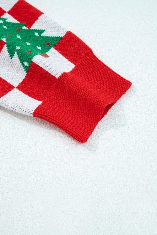 Checker Christmas Tree Buttoned V-Neck Cardigan Sw