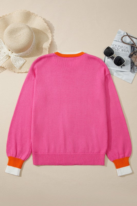 Pearl Contrast Trim Crewneck Drop Shoulder Sweater