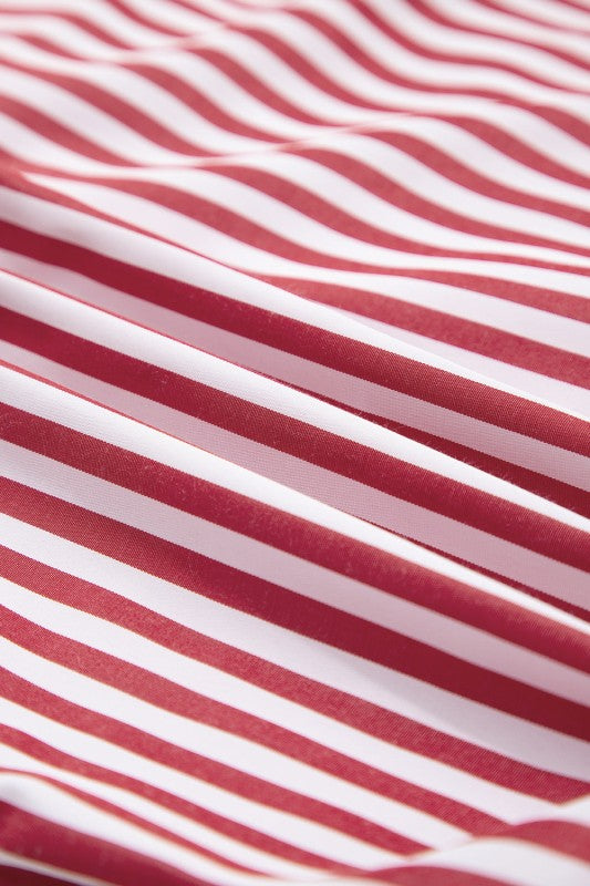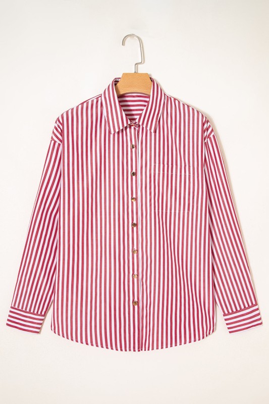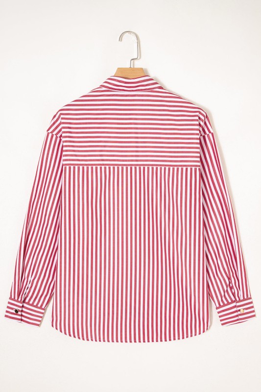 Stripe Patch Pocket Side Slit Buttoned Shirt